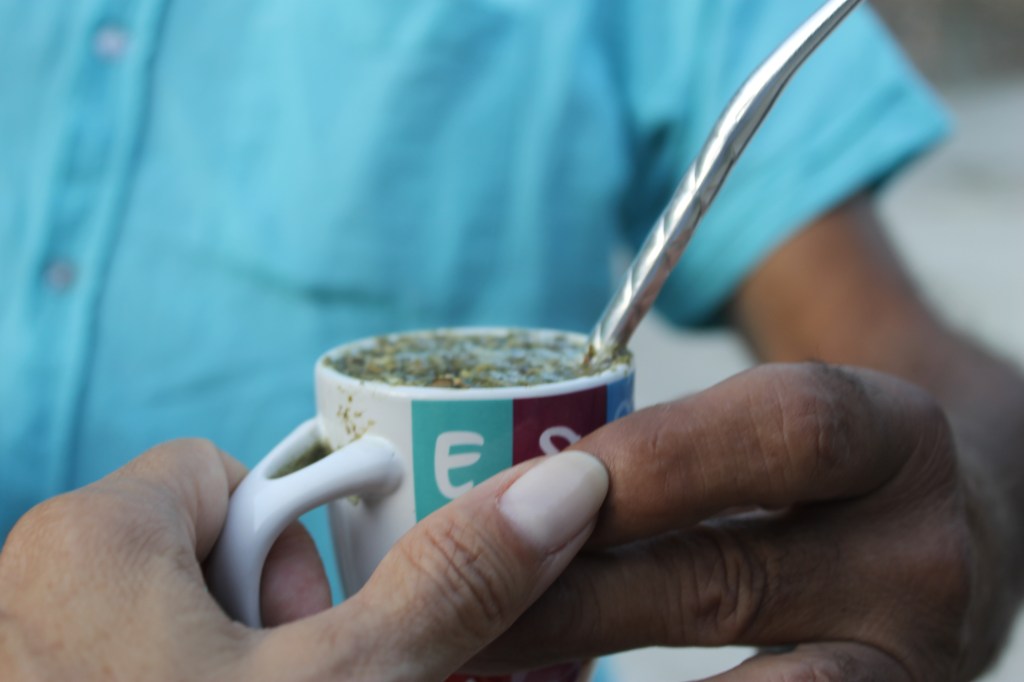 El mate forma parte de la reunión, de la pausa, del momento en el que te cebas unos matecitos para «calentar el garguero» (coloquial de garganta), del desayuno, merienda y los entremedios: una charla, matear mientras escribes, matear escuchando la lluvia y también los pájaros …